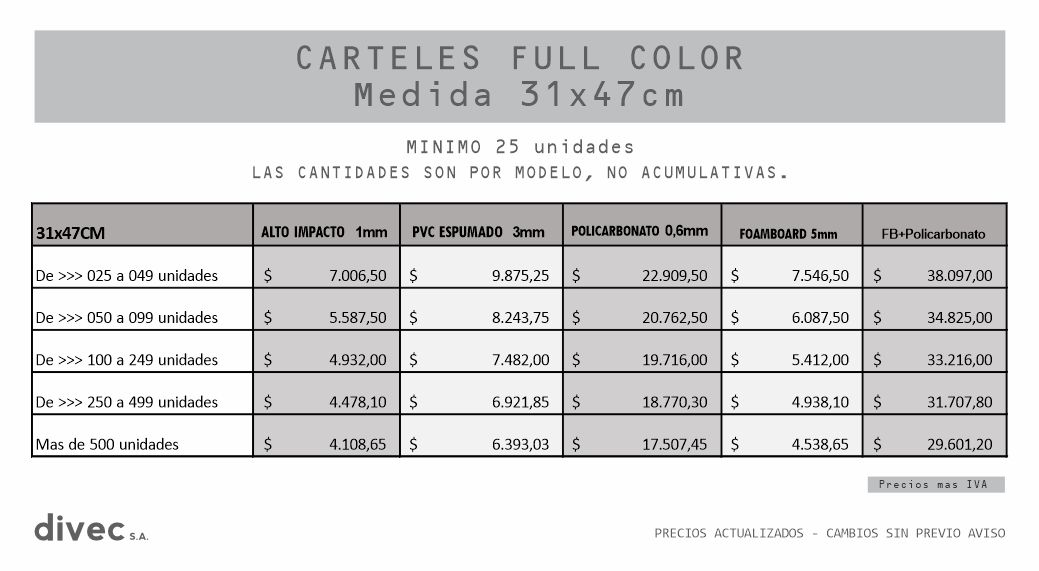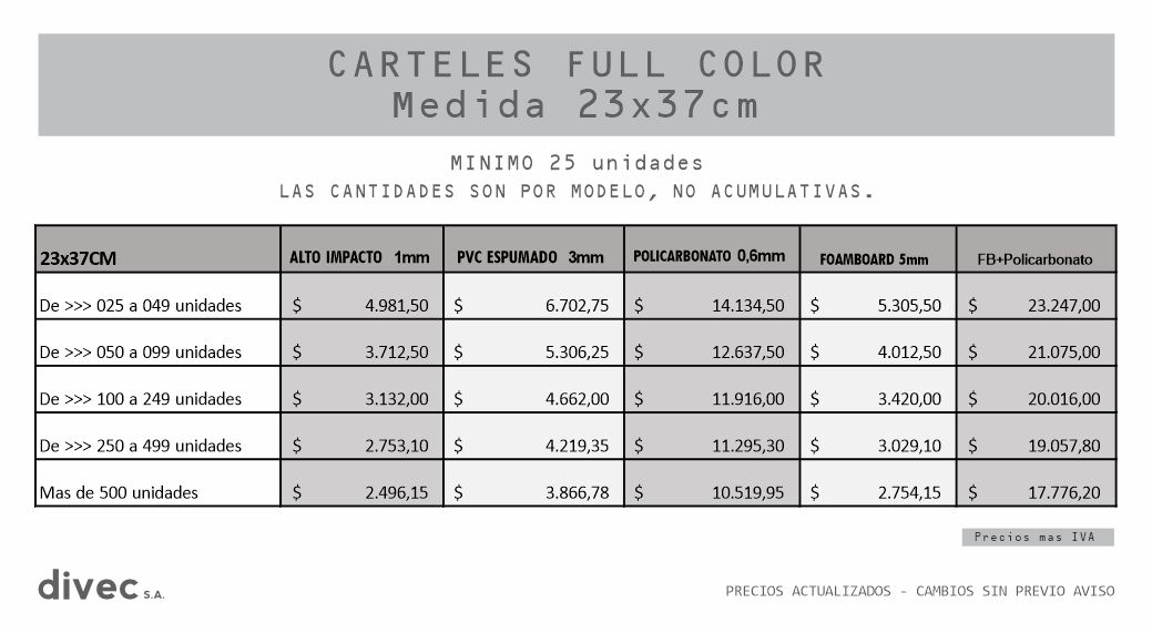 CARTELES/ Alto impacto-PVC espumado-Policarbonato-Foamboard